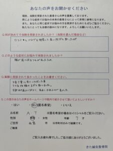 最後に、ご自宅でのストレッチ法をお伝えし経過観察。
