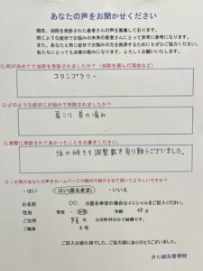 もし同じように、なかなか取れない肩こりでお困りの際はご相談ください。